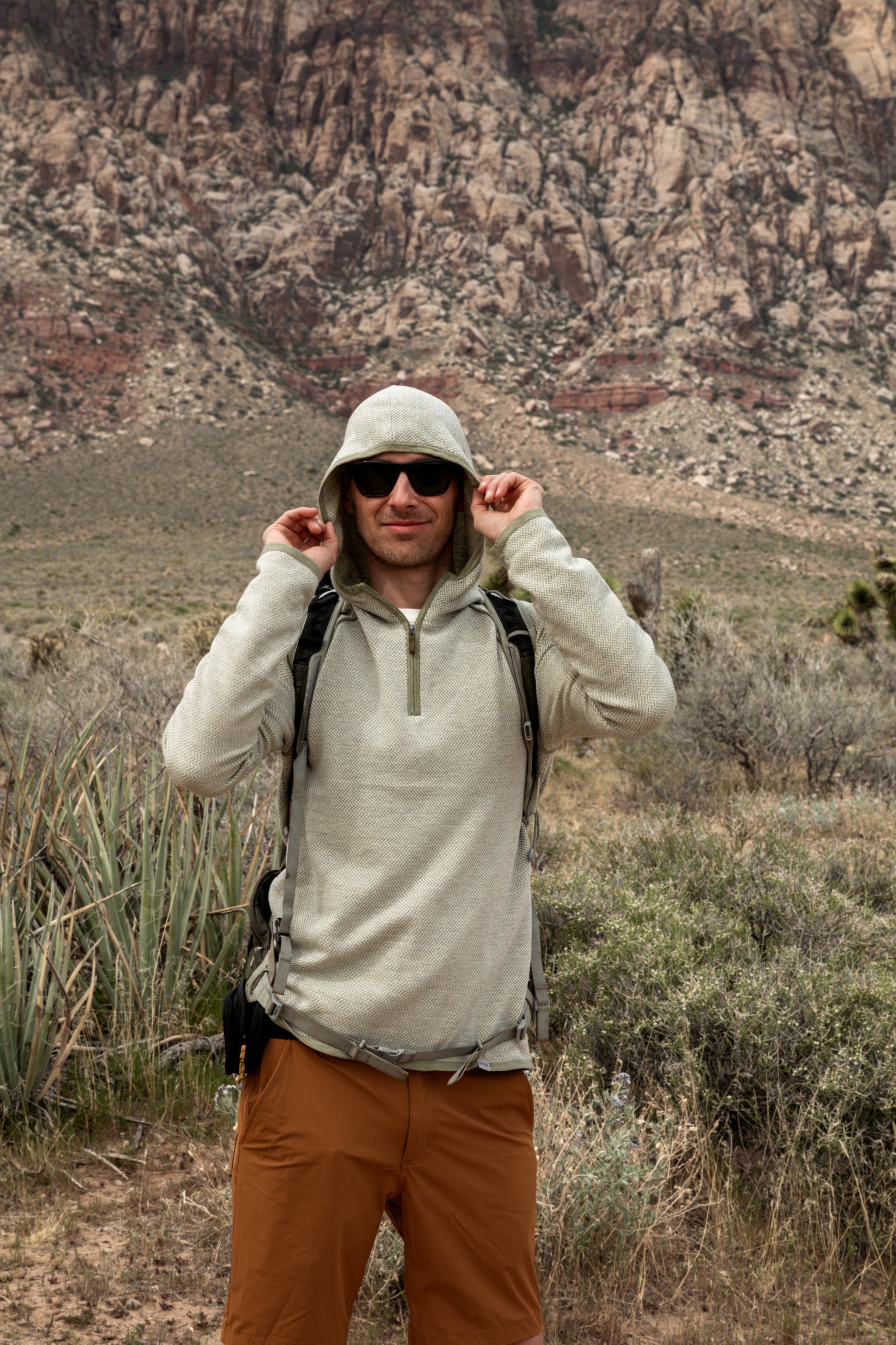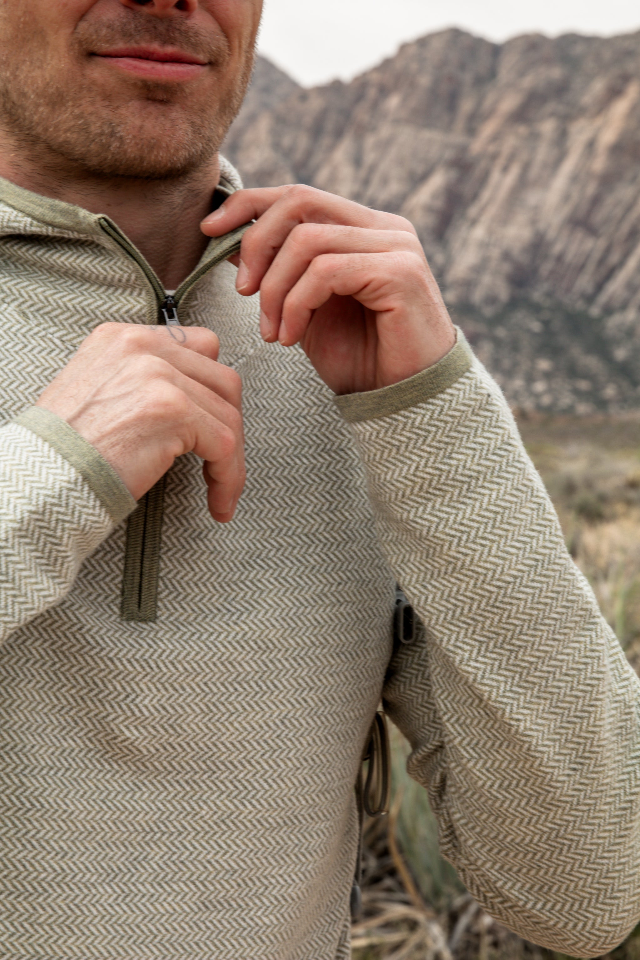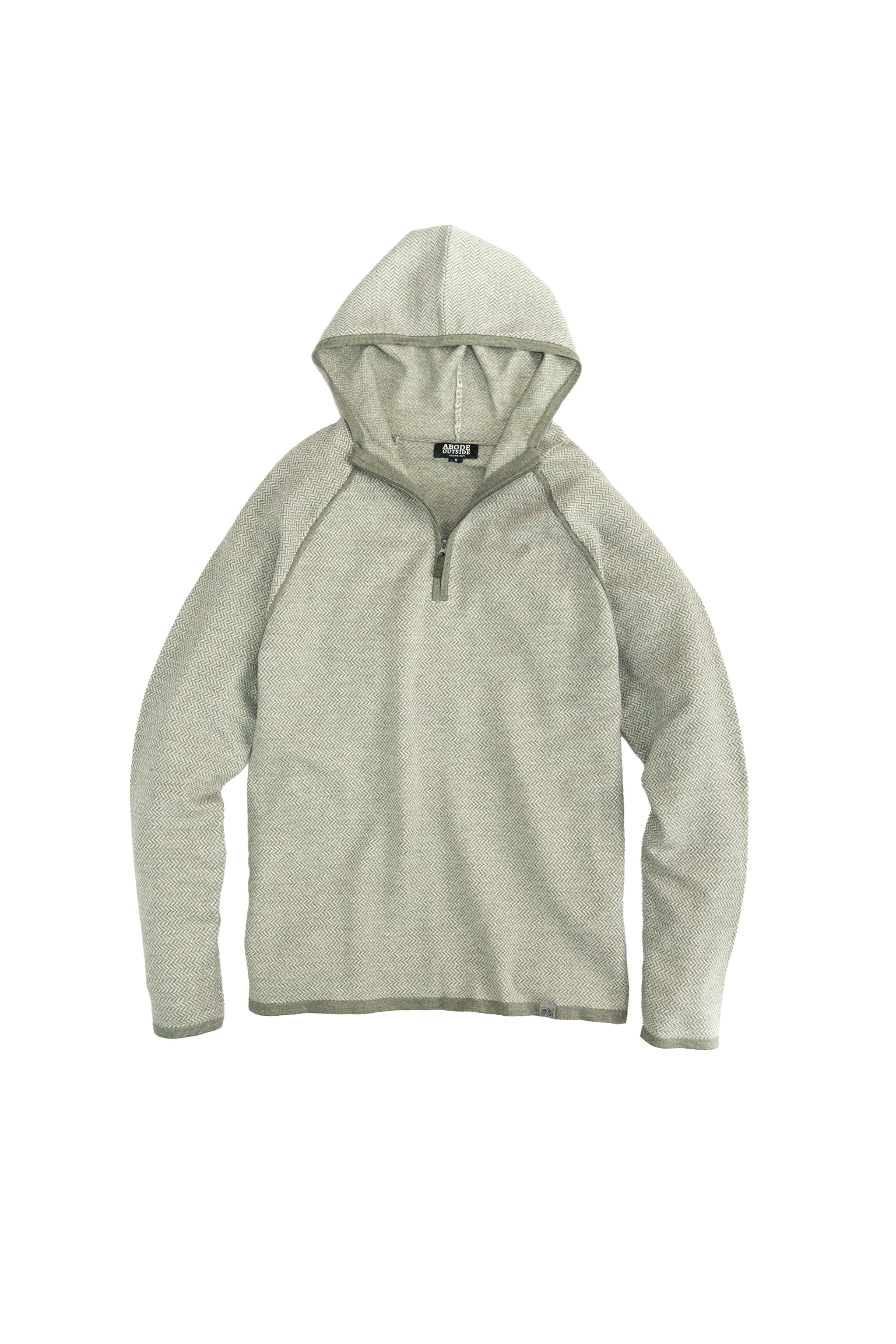 The Harbor Hoodie is an ultra-soft, all-season hoodie featuring a quarter zip and a stunning all-over herringbone pattern.