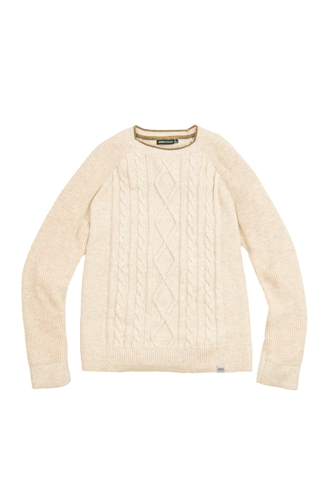 People love cable knits so we made a lightweight, all-season cable you can wear year-round. The Waypoint is a lightweight crewneck with an eye-catching cable knit pattern made with a soft blend of responsibly sourced cotton and post-consumer recycled nylon.